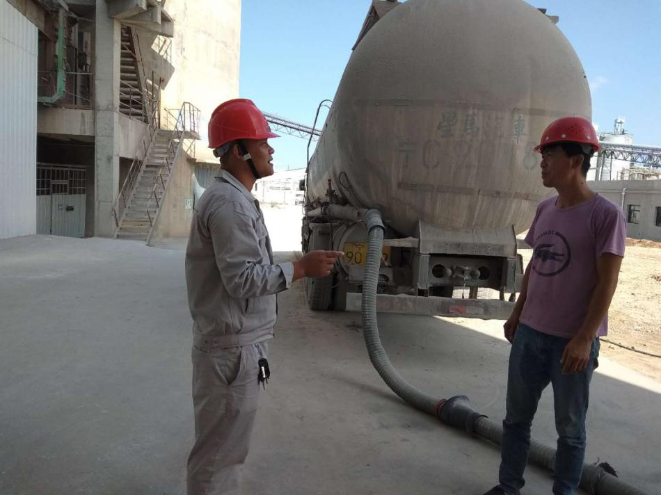 “师傅,您好,稍等一会儿。”8月24日,在生料装置粉煤灰库前,罐车司机正准备打开气泵输送粉煤灰,被现场巡视的调度员小周叫住了。