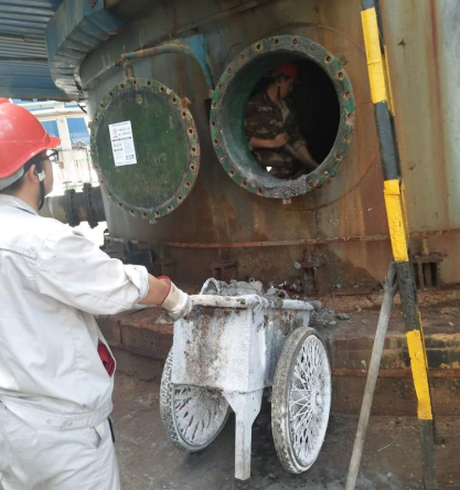 一线工人是企业责任心最强,任务最重,工作量最大的特殊群体 ,作为企业经营效益的基础,他们面临工作中的巨大挑战,工艺,设备,安全,环保等各个方面。然而,设备的维修是最严峻、最苦、最累的。2018年7月,热力装置迎来了锅炉的第一次大检修。磨煤机的内部检查,空预器的清洗,压力容器的检测,二次风门的校正……在此次检修中涌现出一批最可爱的人。众所周知,磨煤机是锅炉的重中之重,磨煤机安全稳定是保证锅炉正常运行的基础,在这次检修工作中,他们不怕脏、不怕累、不怕苦在狭小的空间辛勤的劳作,汗水一次又一次的浸湿了衣衫,混着煤粉,穿着比平常重了好多的衣服,工作在检修一线,为锅炉安全稳定的运行付出着。加班加点他们早就习以为常,全身心的投入,不辞辛苦的工作,为安全生产尽着自己最大的努力。三年的运行,空预器严重堵灰,热效率下降,清理空预器成为最大的难题。在受限空间作业,得先清理积灰,然后用高压水枪一根管子一根管子的冲洗,穿着重重的雨衣,灰与水一遍又一遍的为他们洗脸,他们开玩笑说:“上班不用洗脸了,用灰与水洗,美白,哈哈”。最可爱的人,向你们致敬,你们辛苦了。