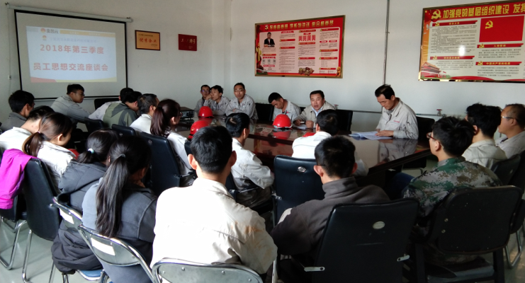 为了充分了解员工的思想动态,征询广大职工意见和建议,帮助员工解决工作和生活中的实际困难,加强员工队伍建设,体现公司以人为本的管理理念,促进企业更加健康、和谐发展,宁夏兴昊永胜盐业科技有限公司于10月10日组织召开了2018年第三季度员工思想交流座谈会。会议由盐业公司总经理尚继荣同志主持,盐业公司党支部副书记王志杰、综合科科长张伟及职工代表列席参加会议。