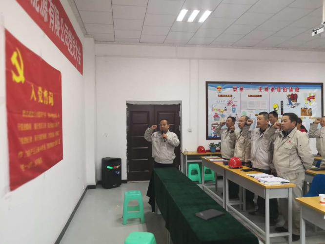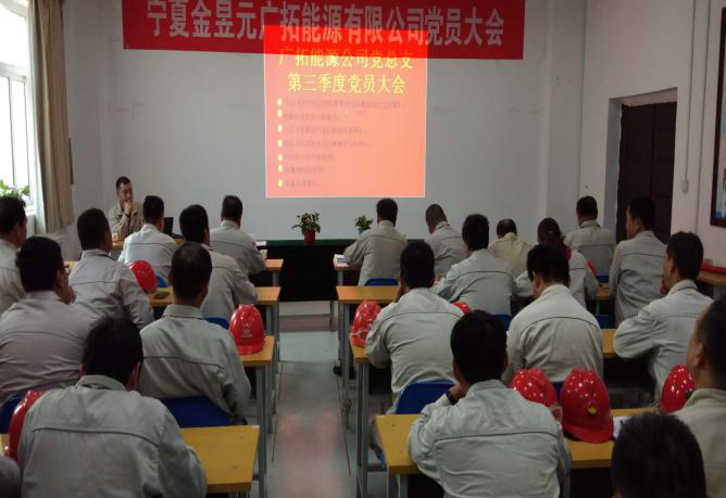 2018年10月16日下午16:30分,宁夏开云体育官方网站广拓能源有限公司党总支“主题党日+”活动及三季度党员大会在化工调度室召开,公司党总支书记马建东主持会议。集团公司党委副书记王立军及全体党员、发展对象、入党积极分子共计60余人参加会议。