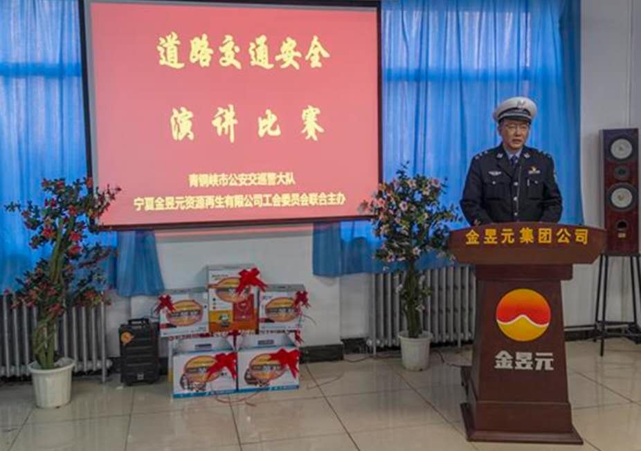 为扎实推进企业安全文化建设工作,提高企业凝聚力、向心力,为员工打造展示才华的平台,活跃职工的文化生活,1月25日下午14:30分资源再生公司工会党委联合青铜峡市公安交巡警大队,举办了2019年节前“道路交通安全”演讲比赛,经过前期的精心策划和安排,邀请了青铜峡市公安交巡警大队宣传中队队长袁洪波、青铜峡片区主管安全副总叶瑞海、片区安全生产部部长丁青林、片区安全主管邹永清、资源再生公司副总经理岳广平列席参加。