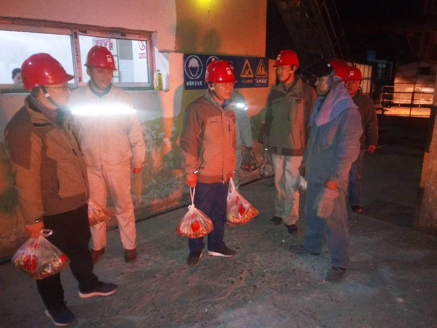 当许多人坐在电视机前,吃着团圆饭,看着春节晚会时,有这么一群人仍然坚守在岗位上,他们就是资源再生公司的一线工人,舍小家保大家是他们爱岗敬业的见证。除夕夜22:00左右,资源再生公司各级管理人员汇聚在一起,带着礼品,深入生产一线,为员工送去了节日的问候,感谢大家在节日期间恪尽职守、任劳任怨、无私奉献,希望大家在繁忙的工作中注意身体健康,并嘱咐坚守岗位的职工们一定要确保自身安全及设备、工艺、质量的安全稳定运行,也祝资源再生公司的全体职工及家属新年快乐。