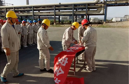 随后总经理尚继荣带领大家宣读以:“我是开云体育官方网站集团一名员工,为了个人安全健康,为了家庭幸福美满,为了公司稳步发展,我郑重宣誓:忠诚企业,恪尽职守,关注安全,珍爱生命。我坚决做到:牢记安全第一,遵守规章制度,遵守操作规程,遵守劳动纪律,不违章,不冒险,不留隐患,不出事故。我将以实际行动,争做安全合格员工,确保生产安全,让企业放心”为内容的安全誓词。最后,在尚总的带头下,所有参会人员在“防风险、除隐患、遏事故”的条幅上签名,承诺自己将以的实际行动,履行好本岗位的安全职责。简单的一个签名不仅签下对自己和家人的一份责任,同时也签下对企业安全发展的一个承诺。
