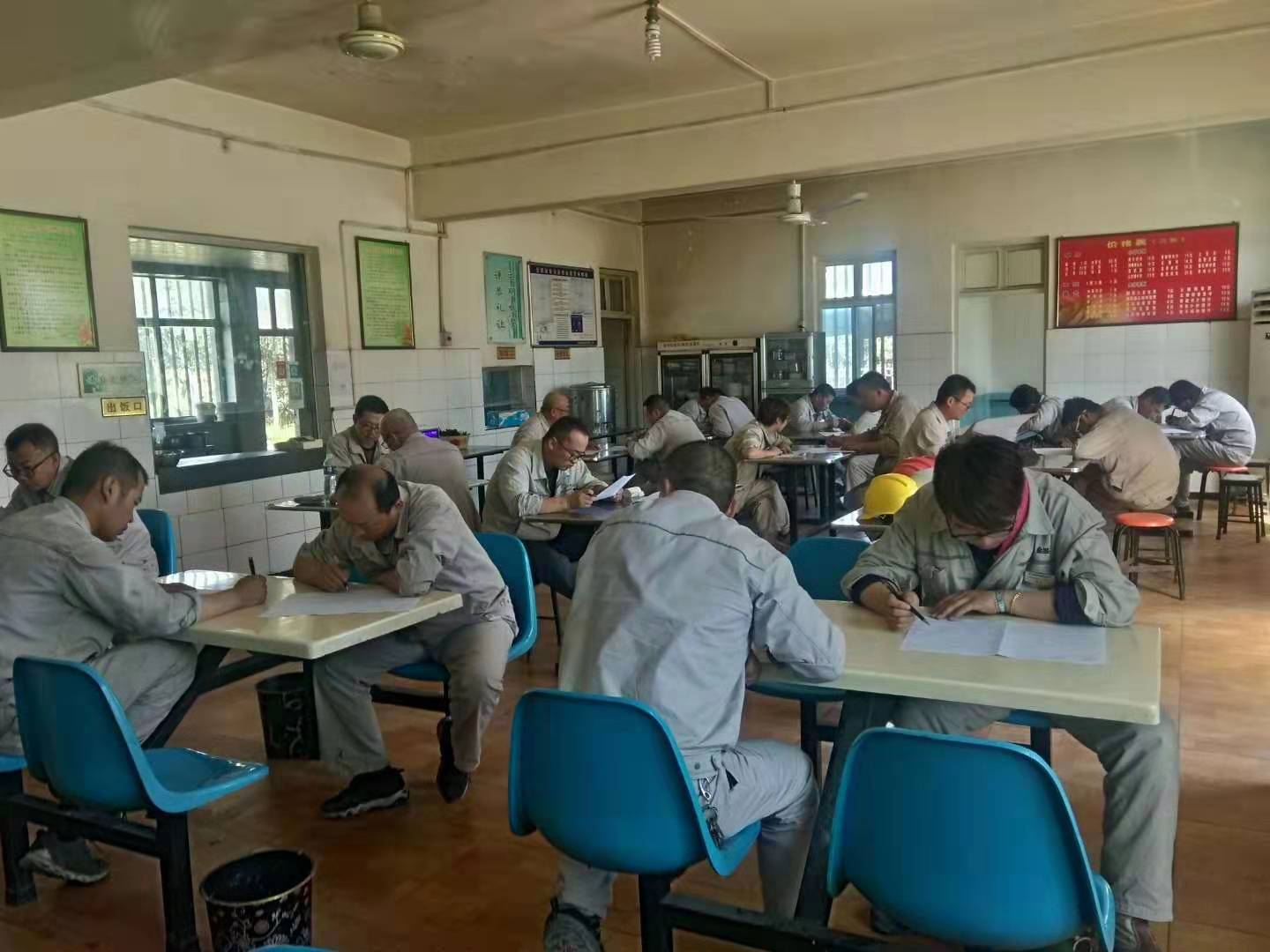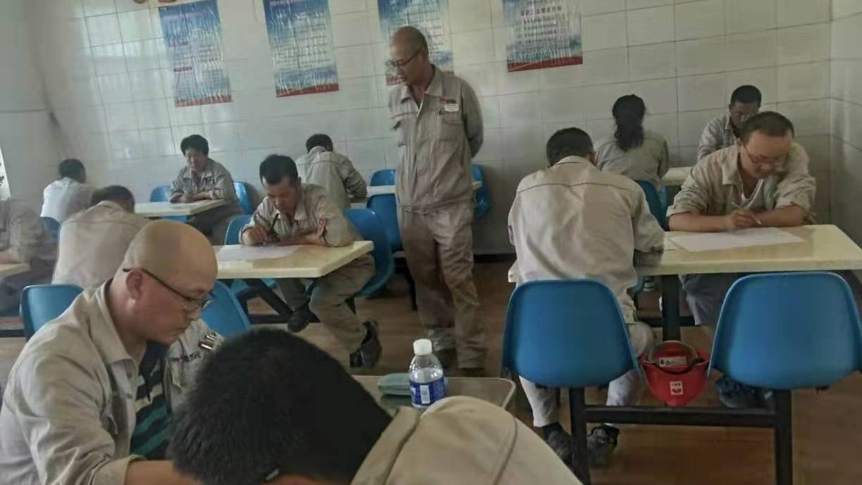 考试分为两场进行,考场分别设在公司餐厅及会议室,此次考试以近期培训的《危害生产安全刑事案件两高司法解释》、《危险性作业管理要求》、《电石、水泥系统较大风险作业安全管控措施》及管理人员应知应会知识为主,考试分为A、B卷组织进行,现场为避免抄袭现象,组织将手机集中保管,分离对坐。