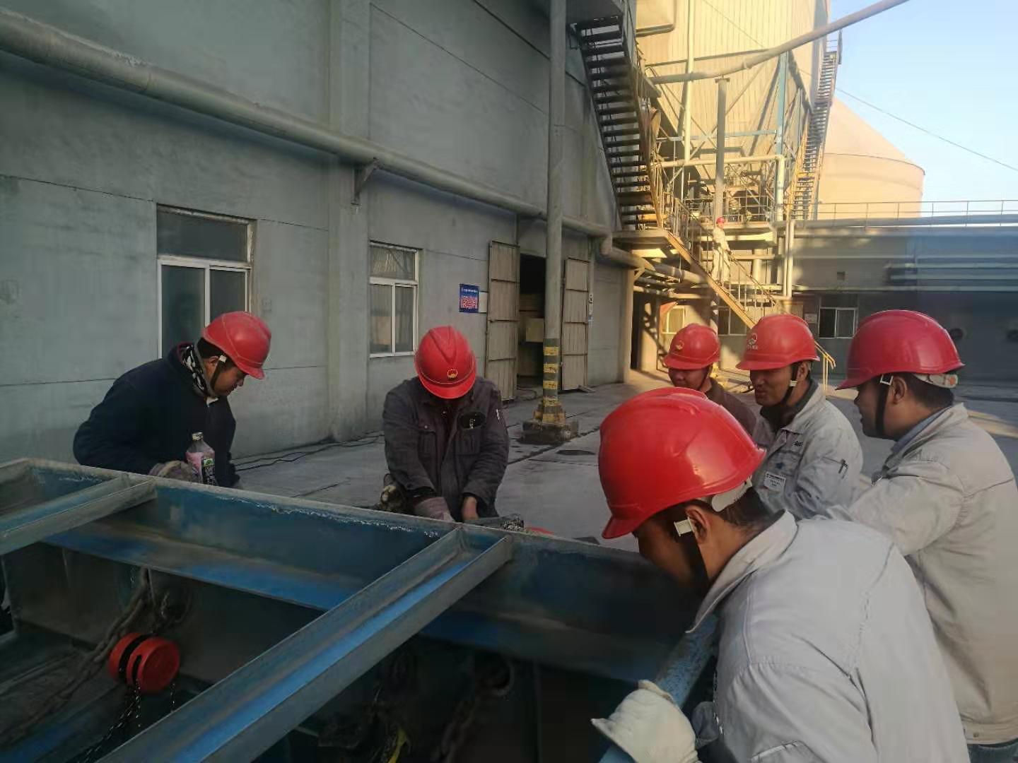 一、成品装置长黄勃强带领维修工对均化库底空气斜槽技改,认真办理受限空间作业票证。指导维修人员计算材料,核对图纸,然后利用简单的工具就地进行比划!