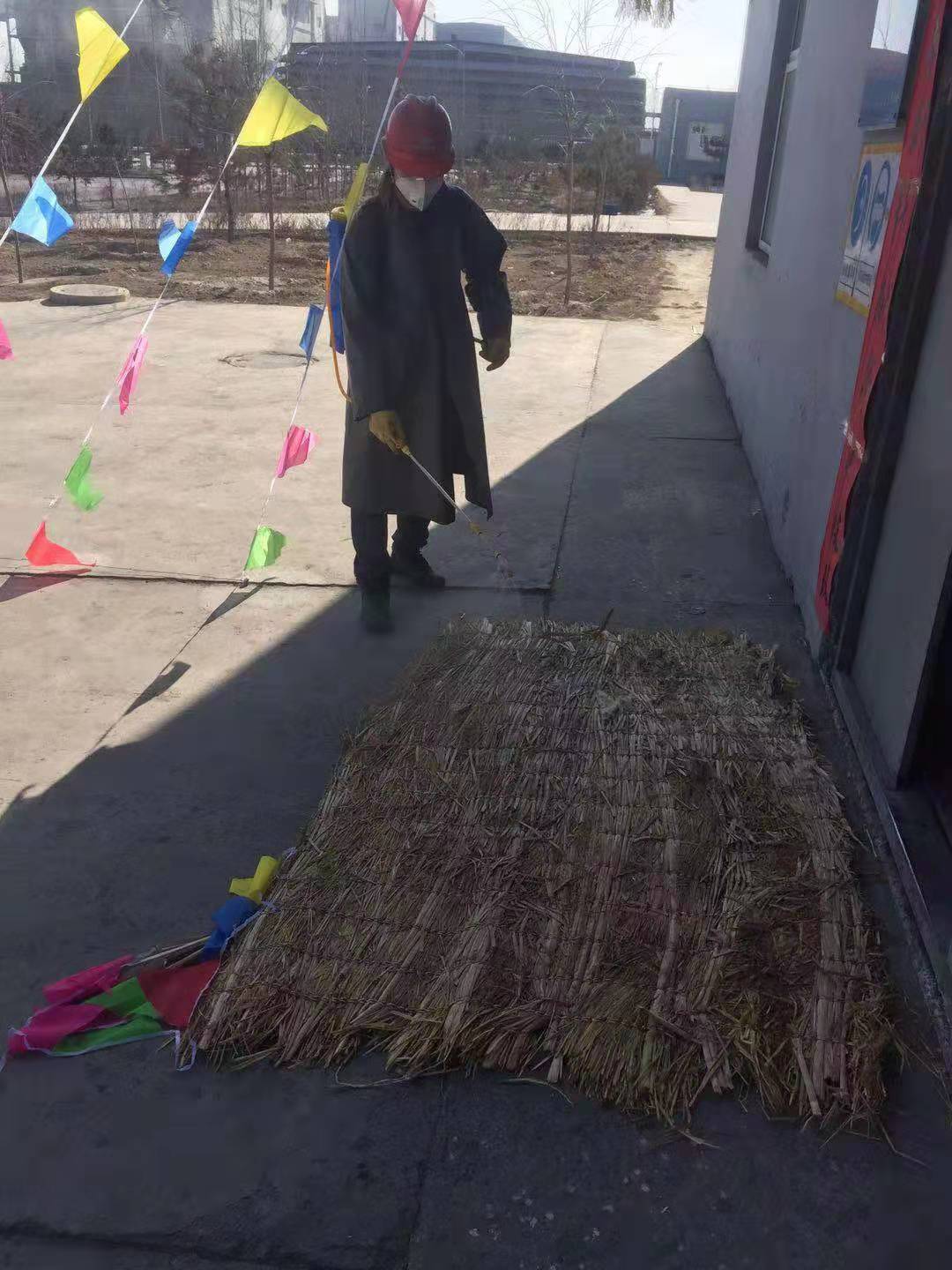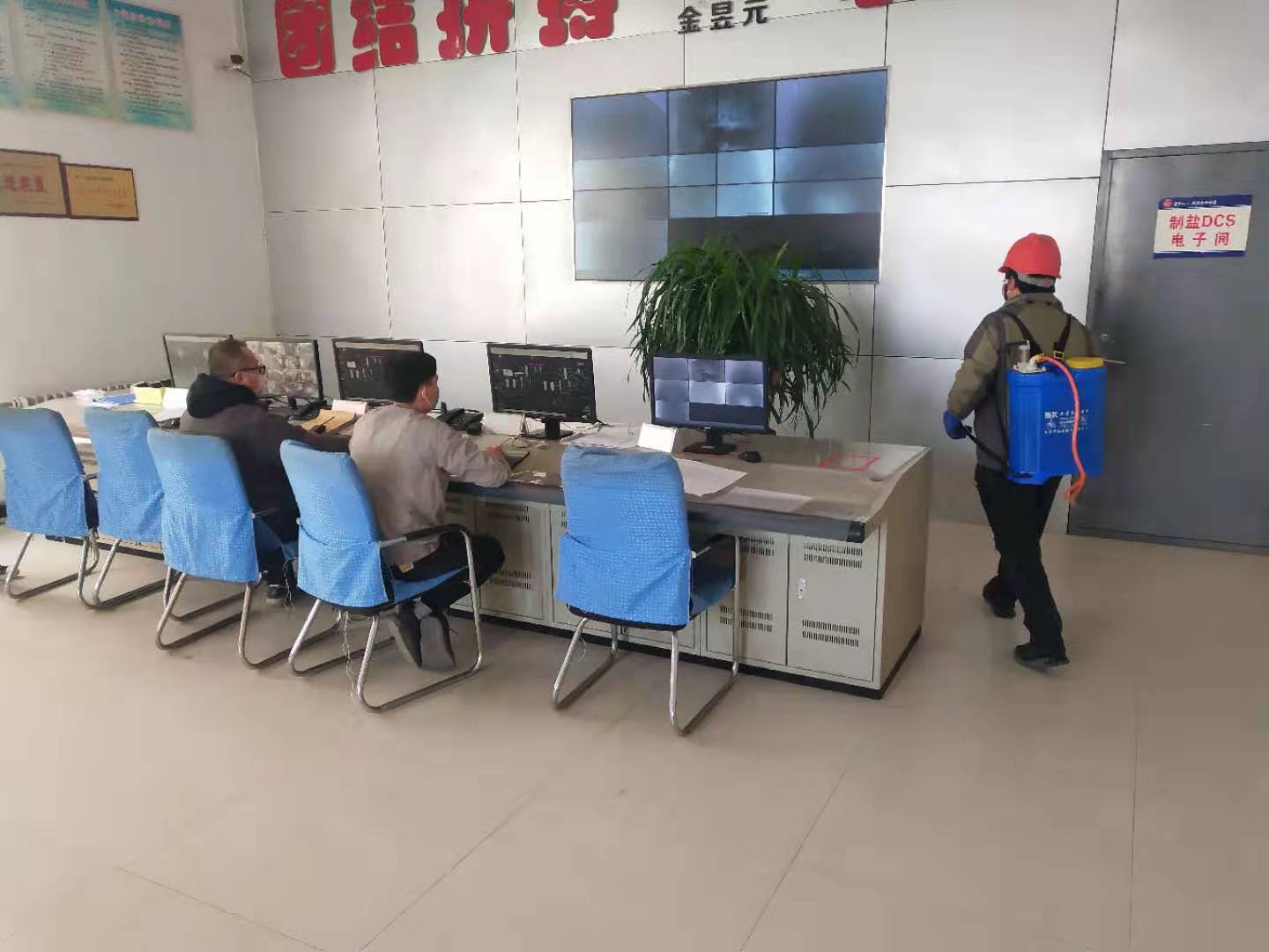 8、各装置、科每日分别于8-9时、14-15时、20-21时对办公区域、主控室、值班室、操作场所、生产厂房等区域进行消毒工作,并做好相关记录。热力装置负责对进入煤场路口铺设草帘或棉质垫子,安排人员每隔二小时向上喷洒消毒水,盐硝装置在小广场护栏间路口铺设草帘或棉质垫子,安排人员每隔二小时向上喷洒消毒水,对进厂车辆轮胎进行消毒。
