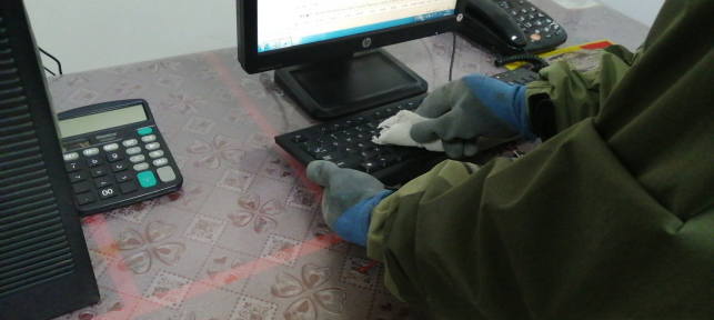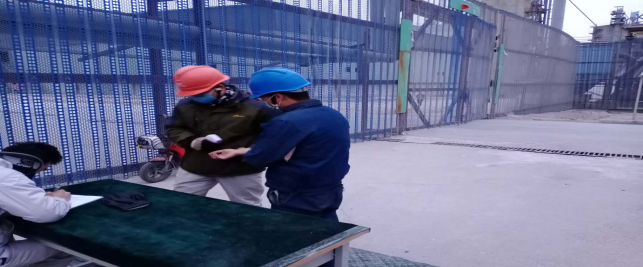 在公司北大门,检查登记、消毒,做好进出厂区人员及车辆登记,全力进行“疫情”防控工作。