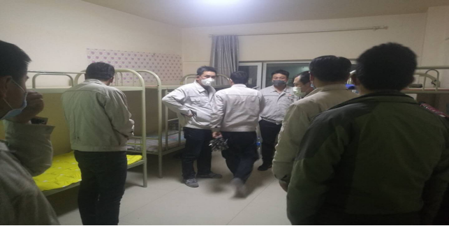在宿舍,检查留宿人员、进行卫生消毒等“疫情”防控工作。