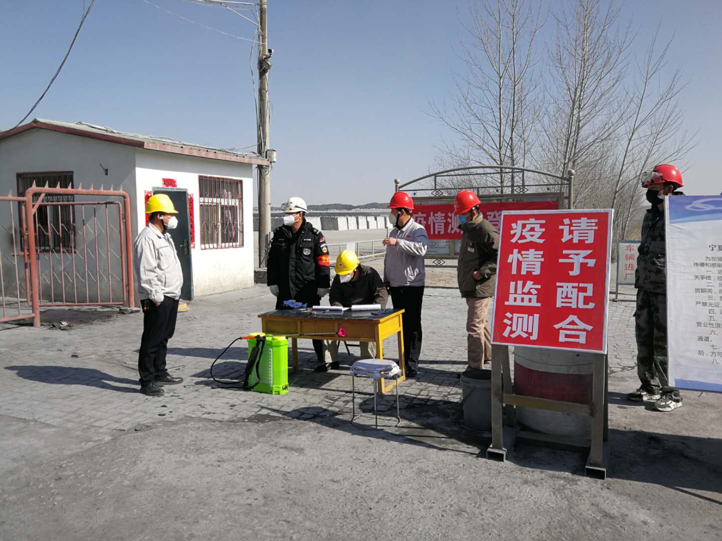 2月22日下午14:00时左右,资源再生公司王总带领公司书记,生产科长,防疫组长等人员对公司内各单位疫情防控情况进行检查。在厂区南大门,各领导人详细检查了原料拉运车辆的消毒和司机的体温测量情况。王总安排:公司南大门是外运原料供给的关键点,相关工作人员一定要做好疫情防控工作,认真开展消毒,体温测量等工作,发现异常情况及时汇报,确保拉运原料车辆安全入厂。