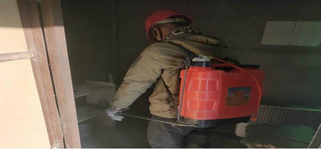 在岗位办公室消毒。
