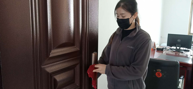擦拭操作台、门把手,工作的有条不紊。
