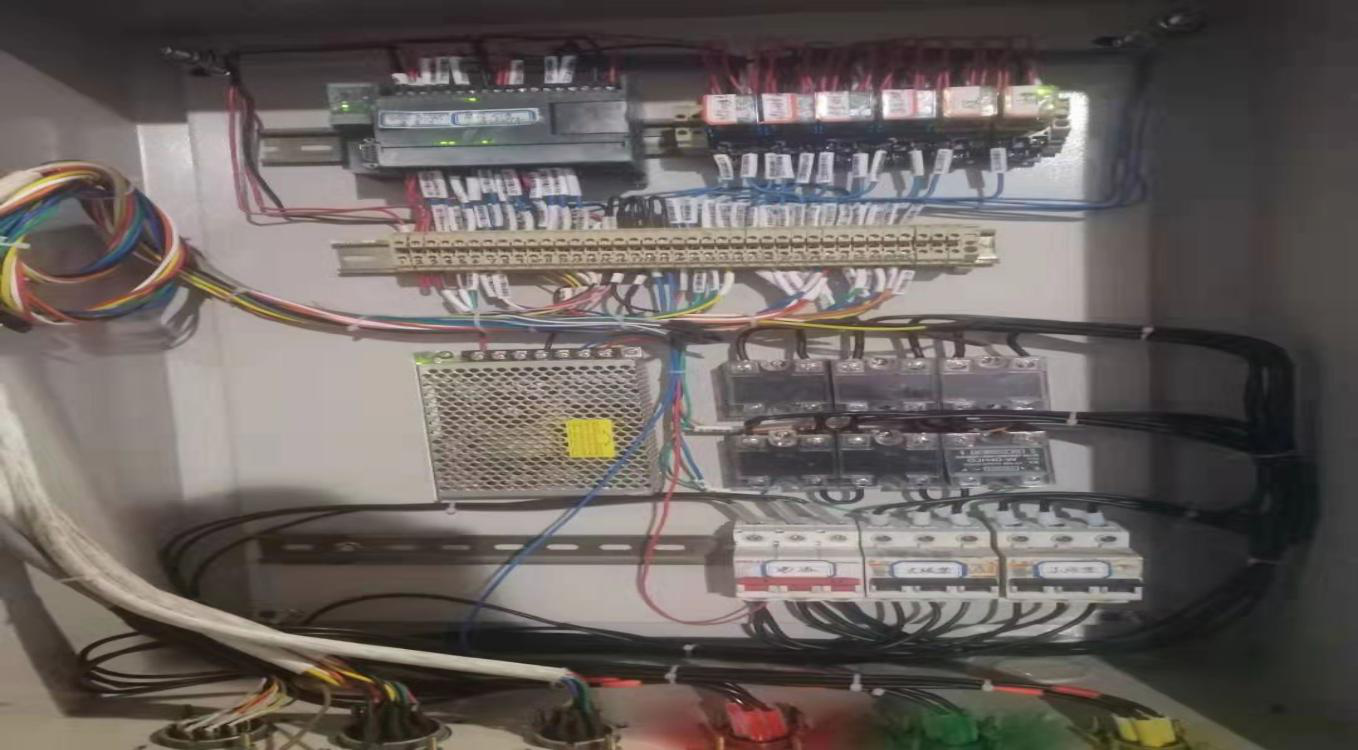 一切准备工作准备充分就绪,电气仪表班长迅速行动起来开始进行前期的配盘环节,几个人在制作配置控制箱的过程中也是边讨论边制作,每一个技改环节都细致的捋了一遍,在装置长王学斌的亲自参加和带领下,经过了两天的努力后,99%碱片碱包装机PLC控制箱终于制作完成,经过在仪表维修班组模拟调试实验,各继电器动作正常,调试合格后,利用99%碱装置因检修1#包装机停运检修机会,重新在99%碱包装厂房北墙上打孔,安装桥架拉设电缆线,安装PLC控制箱,在控制箱安装完毕接线完成后,现场开始试运行,经试运行一周观察后1#包装机运行稳定,故障率减少几乎为零。随后装置领导命令拆除原装旧1#片碱包装机PLC控制箱。