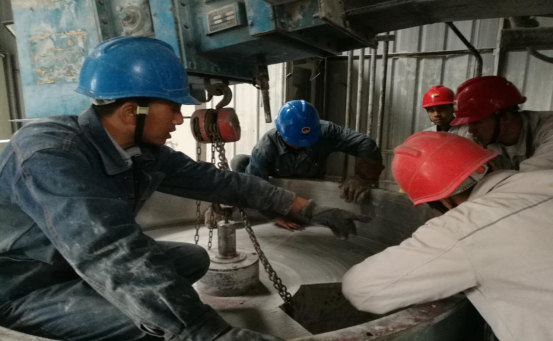 根据检修计划安排,此次检修从9月9日开始,9月23日结束,计划工期15天。计划完成检修标准项目81项,新增18项。参与本次检修的外协单位共3家,主要有更换窑砖、窑头密封改造、辊压机柱钉辊更换、更换预热器挂片、烘干破管道更换及防腐处理、锁风下料器更换等检修内容。