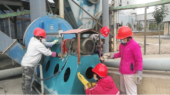 奋战一线,不畏艰辛。检修开始以来,他们人数不多。就综合科、质检科及各单位办事员共不到10人的队伍,搭起来整个现场卫生的清理工作。期间,在每次进入库底清扫清理设备灰尘,进去一会儿,只见满屋飘荡的灰尘,笼罩了整个屋子,分不清谁是谁,但她们一丝不苟的作风一遍又一遍进去憋足气扫一会,出来歇上几分钟,反反复复全面把灰尘清理干净,然后对设备进一步擦拭,擦拭风机外壳的灰尘,设备漏出了久违的笑脸。作为此次检修,确保设备卫生,她与男同胞一起并肩作战,同时上下班,面对灰尘的侵扰,她们没有一个叫苦、叫脏、叫累的……看似柔弱的身躯,同样挥汗如雨奋斗在一线,手拿工具的气势和严肃认真的态度毫不逊色于男同胞。