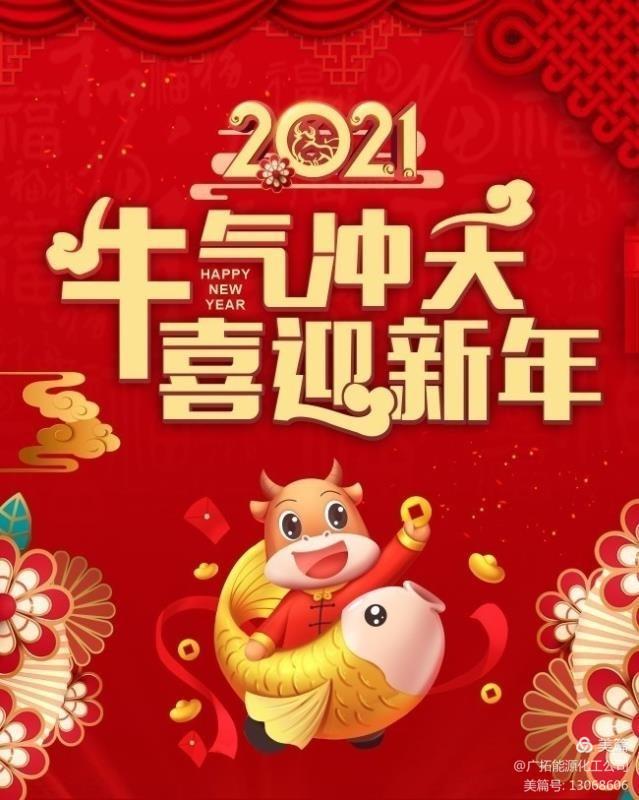 金牛奋蹄开锦绣,牛耕年丰又一春。值此农历辛丑牛年到来之际,广拓化工公司总经理贾存富携公司领导班子向全体员工和给予化工公司鼎力支持的各级领导、朋友致以衷心的感谢和良好祝愿,祝大家在新的一年里牛气冲天,身心健康,万事如意!