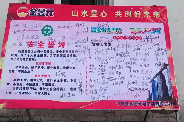 为深入贯彻落实党中央、国务院关于安全生产的重大决策部署,牢固树立安全发展理念,以防范化解重大风险、及时消除安全隐患、坚决遏制生产安全事故为目标,紧紧围绕“落实安全责任,推动安全发展”这一活动主题,落实各级人员安全职责、普及安全知识,强化安全生产的责任意识和反违章管理,树立全员参与意识,把保障安全放到至高无上的位置,通过集中开展一系列安全生产宣传教育活动,将安全目标转化为落实安全生产责任的自觉行动,确保公司安全生产形势持续稳定向好。2021年6月3日宁夏开云体育官方网站炔烃节能有限组织各装置、外协单位开展以“落实安全责任、推动安全发展”为主题的安全月宣誓签名活动。