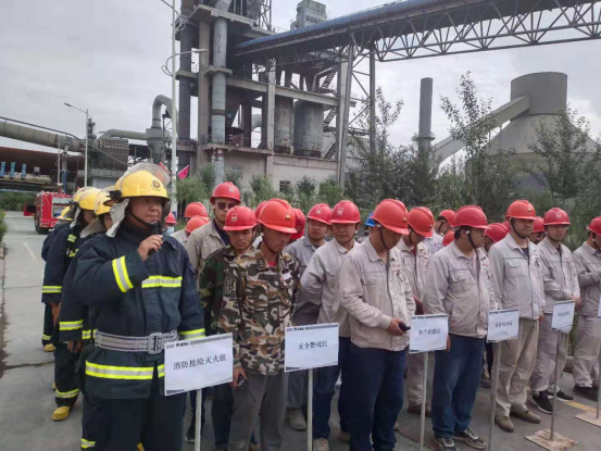 演练培训的主要内容有:围绕煤磨二楼转子秤积煤着火,进行事故区域全面警戒,回转窑系统及煤磨系统全部停车,发生火灾的危害及影响、火灾事故发生时灭火方式、公司消防设施布置情况、消防设备灭火器的使用方式及消防栓的使用、实际操作、对火灾发生时紧急疏散及逃生方式等进行讲解及现场演练!