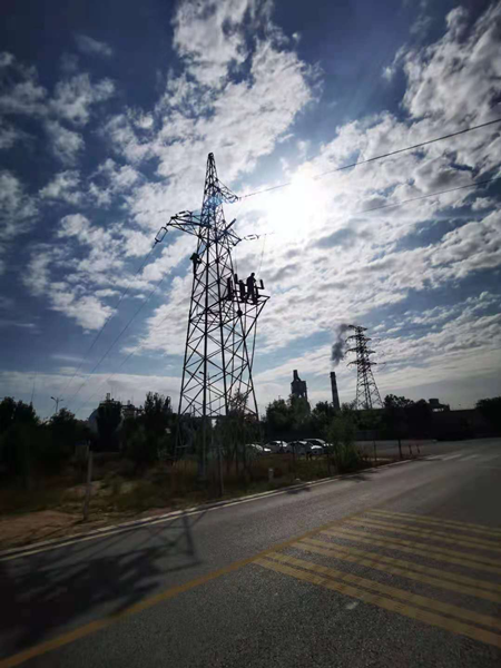 为了保证井组安全,输电线路及杆塔检查维护工作必须保证在8小时内完成,时间紧、任务重。所有人员分成16个小组,每个小组由2-3名检修人员和1名监护人组成,他们分工明确、各司其职、相互配合,用娴熟的操作手法和有序的操作流程,紧固着每一个螺杆,清理着每一处积灰,保证线路检查维护工作能如期、顺利、安全、高效完成。
