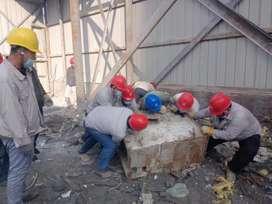劳动中,全体管理人员充分展现了不怕脏、不怕苦、不怕累,勇挑重担的良好精神风貌。大家热情高涨,乐在其中。他们有的几人一组将管件、无法修复的配件、钢材边角料从积料区域的备件先抬出来,将可利用的钢板、钢丝绳等备件挑选出来,用铲车将积压物料的废铁器翻出来;有的忙着把一些可回收的风机用气割剥,拆下修好后作为备件以备不时之需……