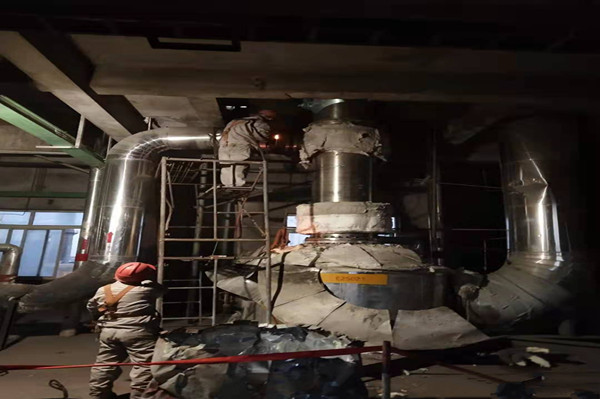 我所在的检修任务是50%碱岗位,这边更换二期Ⅱ效降膜蒸发器效体的负责人是副装置长李学民同志,在办理作业票证落实措施时,只见李主任仔仔细细检查每个作业面,确保高处作业用的脚手架安全可靠,搭建位置准确合理,并提醒检修人员要注意安全。为了早日完成更换效体的检修任务,检修人员争分夺秒加油干,没有一人叫苦叫累,也没有一人临阵退缩,这一刻,他们是那么的耀眼,大家齐心协力、加班加点用实际行动全力促进了此次检修任务,一直从早上7:30干到晚上十点,最终圆满完成了此次检修任务。