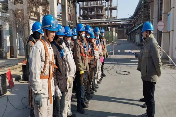 元旦过后,装置领导开会安排放置光纤的任务,各级人员迅速投入其中,每天临近上午下班前,相关班组办理好登高证、检修作业证、作业方案及工作危害分析,把需要放置的光纤盘拉到指定位置摆放整齐,准备好五桩一门和警戒带,下午1点30分,所有作业人员系好安全带,戴上防毒口罩、棉帽子到达现场,落实完各项安全措施,确认具备条件,作业负责人现场进行安全技术交底,交底完毕后,大家有序地爬上桥架,下面的人有拉光纤的,做标记的,往上送的,口哨一响,大家鼓劲使力、齐步向前,光纤一段一段整齐的放置于桥架内,在这几天放置光纤的过程中,乙炔站和六万吨离子膜光缆距离较长,好几位年长的师傅并没有因为年龄大而推脱,同样是系好安全带,穿戴齐全防护用品,早早地上到桥架上,找到合适的位置,安全带系挂牢靠后,听从指挥,保证了放置光纤的任务提早完成。