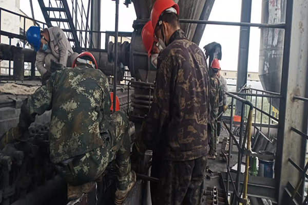 然而一波未平一波又起,在净化刮板机检修完成后的三小时之后,因2#炉净化烟管4段温度一直居高不下,担心造成水管汽化,装置领导与公司领导沟通后决定停炉对其进行处理。自下午15:28开始停电处理直至18:17送电,为期2个多小时的停炉检修及处理,让站在顶楼抢修的人员直呼:“冻得都感受不到自己的耳朵和脚了”。虽然天气如此恶劣,但面对生产任务紧张,面对检修,我们的领导和现场检修人员没有一个人抱怨,有的只是手中不断闪现的电焊火光和一心完成检修工作的紧迫,在这里让我们为他们深深说一句:你们辛苦了。