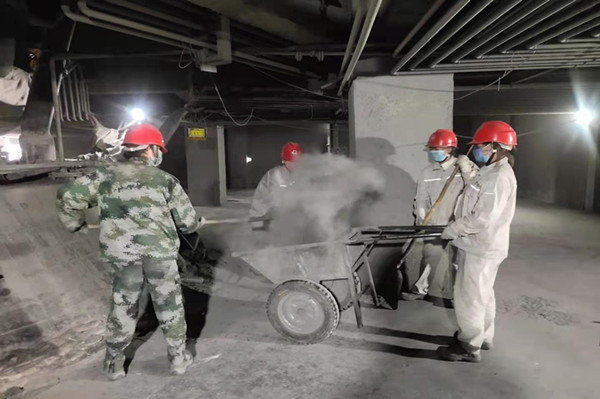 经过二层炉面时我的眼球被几个迷彩绿吸引了,走进一看是我们可爱的女职工,她们拿起了大锹,扫把两人一组拉着推灰的车子清理空冷仓空冷管壁积灰,炉面积灰及更换后的保温材料,女职工们以主人翁的姿态紧跟步伐,以“团结、拼搏、求是、创新”的企业精神要求自己,以“相互尊重、相互信、任相互支持、荣辱与共”的团队精神勉励自己,互帮互助,为电石发展展示巾帼风采。