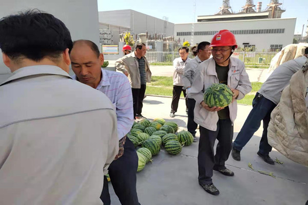 随着气温不断升高,公司电石冶炼、水泥回转窑众多岗位进入了“烧烤”模式,为致敬高温下的劳动者,近日,公司领导组织了为一线人员送清凉活动。大桶的绿豆汤、矿泉水、西瓜、藿香正气水等防暑物品送到一线岗位工人手中,为烈日下奋战在一线工作岗位上的劳动者带来了丝丝清凉和关怀。