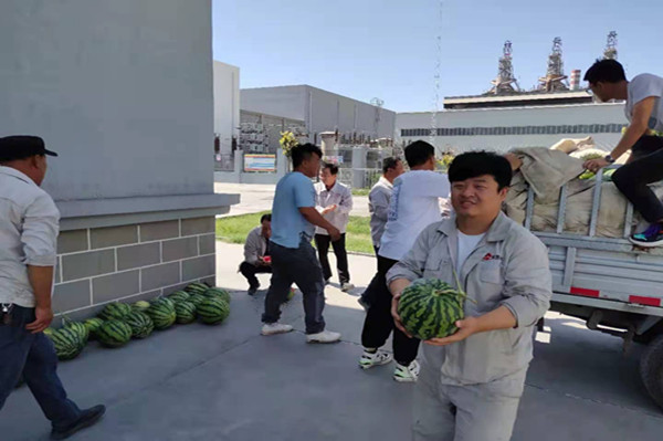 2022年7月集团公司工会主席来一线现场,为广大一线职工送来新鲜采摘的西瓜。正是一天中气温最高的时候,烈日炙烤着大地,整个空气热气腾腾。为坚守在一线的干部职工送来夏日的清凉。并详细了解了职工的日常工作情况和高温劳动防护措施情况,叮嘱干部职工在一线及外出工作时做好防暑降温措施,注意劳逸结合,保障自身的安全健康。这些防暑降温用品虽然不贵重,但它表达了工会关心职工、体恤职工的浓浓情意,也在炎炎夏日为广大干部职工带来一丝惬意、一缕清凉。大家一致表示,会将这份关怀转化为努力工作的动力,将鼓足精气神,尽心尽力做好本职工作,为公司发展作出应有的贡献。