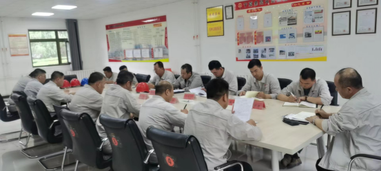 会前副总经理梁军首先组织学习了某水泥厂回转窑停车检修窑筒体冷却风机做动平衡检测,由于“安全带悬挂不当”,造成人员受伤的安全经验分享,通报了全国、全区及行业内部上半年安全形势。