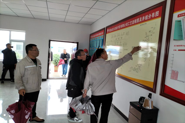 总经理尚继荣就岩盐开发公司绿色矿山建设情况作了简要汇报。考评验收组一行听取汇报后,观看了绿色矿山建设宣传片,观看了绿色矿山建设前后厂容厂貌效果图,并从矿区环境、资源开发方式、资源综合利用、节能减排、科技创新与智能矿山、企业管理与企业形象六个方面,详细检查了绿色矿山的相关资料。随后,考评验收组一行到集控室、卤井阀门室、卤水净化岗位、钙镁泥临时堆场、钙镁泥洗涤装置、职工餐厅、职工宿舍等场所进行实地检查,查看了现场标识标牌,询问了工艺技术、环保治理、井场复耕、党建及文体活动等工作开展情况,公司总经理尚继荣就相关问题逐一进行了解答。