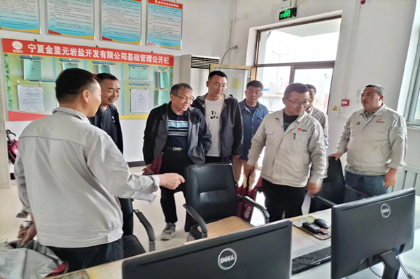 2022年8月25日上午,自治区绿色矿山建设考评验收小组组长朱平,带领绿色矿山建设考评验收小组,在原州区自然资源局矿产科张主任的陪同下,莅临开云体育官方网站岩盐开发公司开展绿色矿山建设第一次考评验收工作。公司总经理尚继荣、副经理庄涛及采卤副总工程师温艳廷等陪同检查。