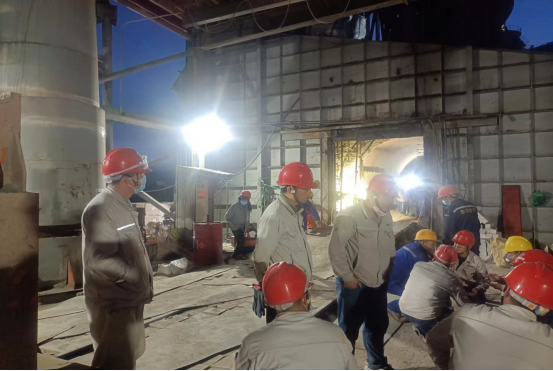 今天,他们将完成一项重要使命,按照操作卡,在装置温度、压力各项满足条件后于上午8时26分回转窑点火升温,于10月1日00时40分实现正式投料,至此,大检修圆满成功。