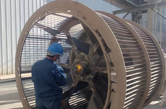 走近检修现场的每一层框架,会有一种“未见其人,先闻其声”的感觉。锤子的敲击声、检修负责人的交底声、噼里啪啦的风声,声声入耳,像一首和谐的乐章。风大,高处作业不能进行,就转至地面隐蔽处作业;下雨,室外作业不能进行,就转到厂房、塔架框架里,不管自然条件如何变化,检修作业,雷打不动。