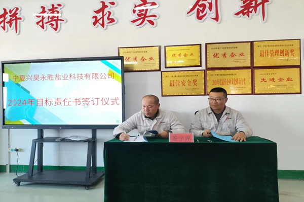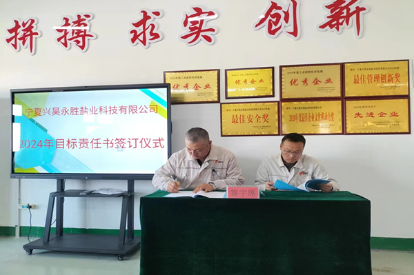 2024年1月8日下午,盐业公司组织召开了2023年度总结表彰暨2024年目标责任书签订大会。会议由总经理尚继荣同志主持,副经理、科室长、装置长、受奖人员及员工代表参加。
