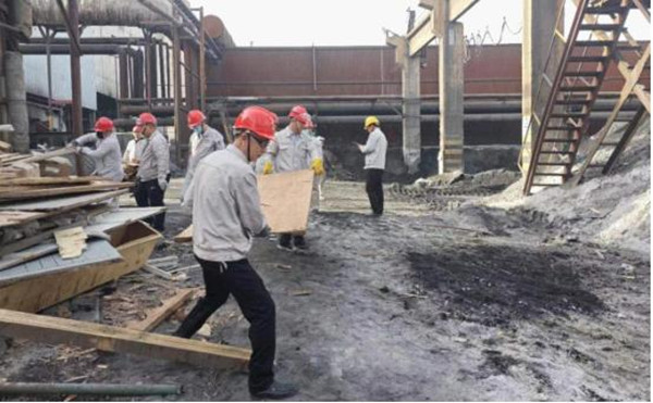 参与劳动的人员发扬不怕苦、不怕累、不怕脏精神,三五成组、互相配合、分工明确、齐心协力,搬运杂物木板、挥锹坪土铲草、清理铁皮及塑料板,活动现场热火朝天。经过一上午紧张有序的劳动,99%碱厂房周边堆砌的杂物、杂草及乱堆放物品都被清理干净,生产现场环境恢复了往日的整洁。