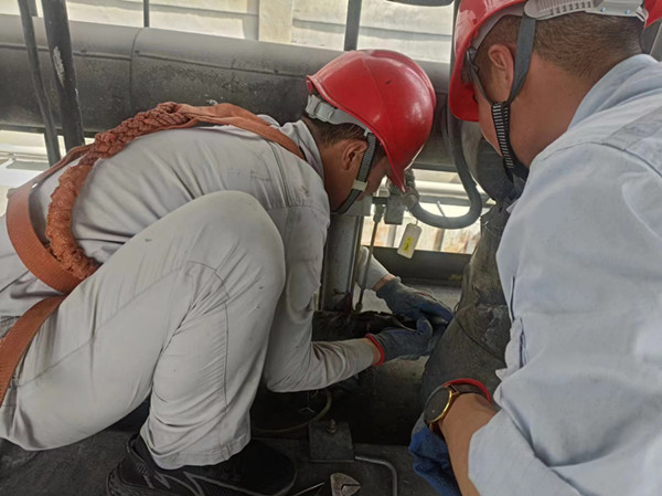 检修任务繁重,短暂的吃饭后,他们又投入到检修中。检修期间,全员发扬着开云体育官方网站“团结、拼搏、求实、创新”的企业精神,本着精益求精的工作态度,要求所有检修工作内容不得一丝马虎,严格执行三级质量验收,确保检修质量,为电石炉长期安全稳定运行打下坚实的基础。