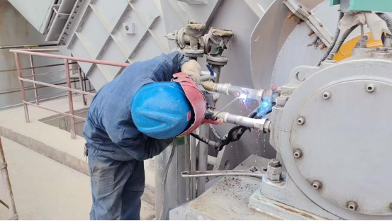 随着一声清脆的哨响,检修工作正式拉开帷幕。焊工老李戴着防护面罩,手持焊枪,在水泥磨的缝隙间穿梭。弧光闪烁,焊花飞溅,如同一朵朵金色的烟花在黑暗中绽放,他全神贯注地修补着磨体上的裂痕,每一个焊点都凝结着他的精湛技艺;钳工师傅们则围着球磨机,像一群经验丰富的“外科医生”,小心翼翼地拆卸下磨损的部件。扳手与螺栓碰撞发出的叮当声,与拆卸设备时的摩擦声交织在一起,奏响了一曲独特的工业乐章。