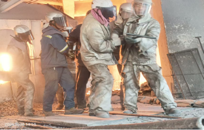 出炉工,是这里的主角。他们身着被汗水反复浸透又烤干、结出白色盐渍的阻燃服,头戴沉重的防护头盔,像无畏的战士,坚守在阵地的最前沿。他们的工作,是时刻关注炉况,用长长的钢钎疏通投料口,防止“棚料”。每一钎下去,都需要全身的力气,与炉内黏稠的料浆抗争。汗水从额头滚落,迷住双眼,却来不及擦拭,因为炉火不等人。