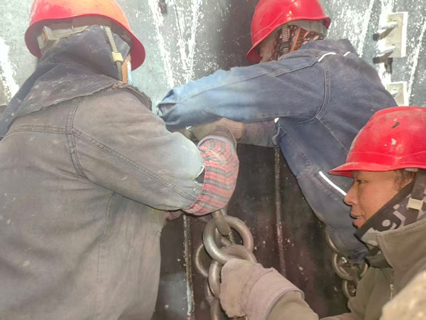 片区总经理、安环生产部等多级管理力量下沉一线,将安全管理细则与责任清单落到实处,通过风险隐患排查、专题研讨、事故“回头看”等举措,彻底扭转“等靠要”惰性。面对冬季低温、高空作业、体力消耗大等多重考验,参检人员无一句怨言,在管理层的统筹协调下,高效推进窑尾链条补挂、入窑铰刀更换等关键项目,确保回转窑检修按时间节点稳步完成。