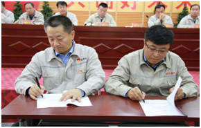 为了进一步明确权责,强化各级管理人员的责任意识,提高履职能力,会上,集团公司各级主管领导签订了《2019年经营管理目标责任书》和《2019年安全环保目标责任书》。