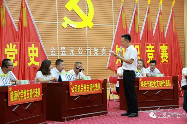 7月26日下午,党规党史知识竞赛正式拉开了帷幕。来自集团公司青铜峡片区的能源化学公司党支部代表队、资源再生公司党支部代表队、集团公司机关党支部代表队和来自固原片区的炔烃节能党支部代表队、兴昊永胜盐业公司党支部代表队参加了竞赛。