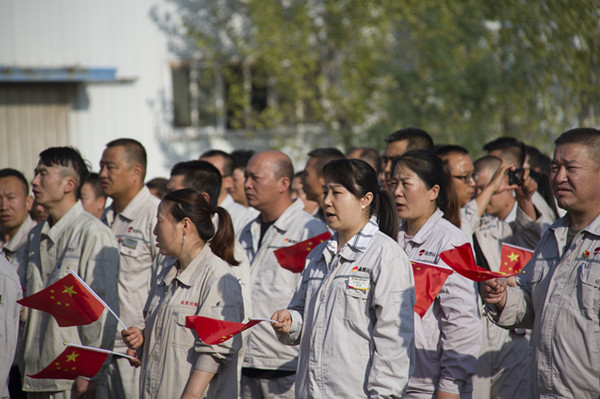 高亢的国歌、鲜红的国旗,鼓舞着广大员工用自己的实际行动立足岗位、奉献企业,建设祖国,为早日实现中华民族伟大复兴的中国梦而不懈奋斗。