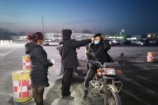 2月13日,气温骤降,在片区北大门新增检测点,由于值班室是移动房,没有暖气,刘聪俊和侯进在晚上顶着寒冷值班。尽管天气严寒,但他们依然坚守岗位,一丝不苟地对通行人员进行体温测量和信息登记,严把疫情防控关。和他们一样,所有检测点的保卫科人员都默默无闻地与疫情防控和严寒做着斗争。