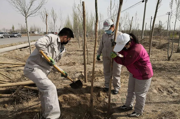 在栽植过程中,各片区、部室严格按照树苗栽植标准,重方法、讲科学,力求保质、保量、保成活。