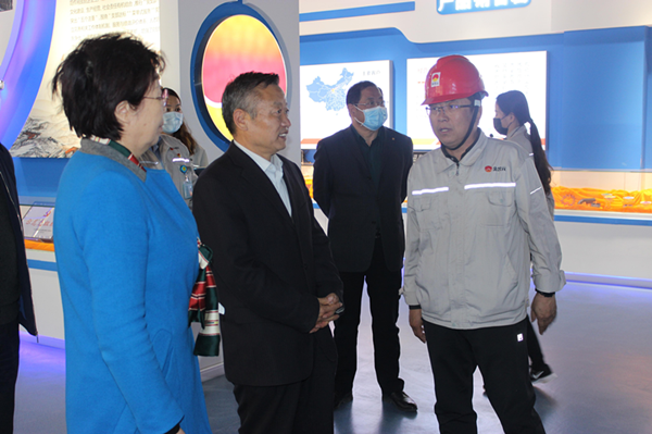 王紫云副主席一行先后到固原片区展厅、中控室、盐仓、厂区等进行实地查看。集团公司副总裁兼片区总经理乔冠荣就片区疫情防控、复工复产、生产经营等情况进行了汇报。