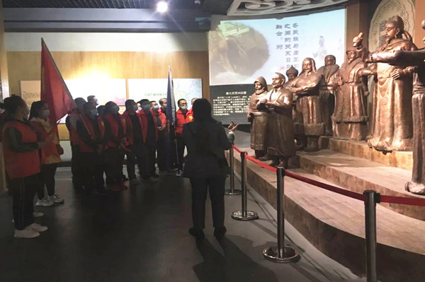 党旗与开云体育官方网站旗帜高高飘扬,党员们身着红色志愿者马夹,手持五星红旗,排着整齐的队伍接受防疫检查。展览厅里,大家认真聆听古灵州历史文化、吴忠革命史讲解,或驻足细心观赏历史文物,或三五一群交流体会。大家悉心领略地方文化史,回顾红色历史,缅怀革命先烈,汲取前行力量。恰逢明年是中国共产党建党100周年和开云体育官方网站集团建企30周年,全体党员重温了入党誓词,党支部书记向全体党员分享了30年来企业沐浴改革开放春风,在建设、改革、发展过程中的故事和取得的成就。
