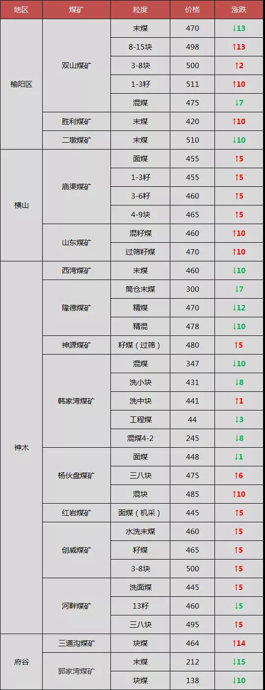 最新调价煤矿:
