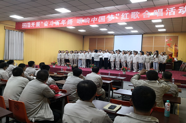 为迎接建党100周年,开展了“奋斗百年路,唱响中国梦”红歌合唱活动,在歌曲《不忘初心》的旋律中,主题党日活动达到了高潮。
