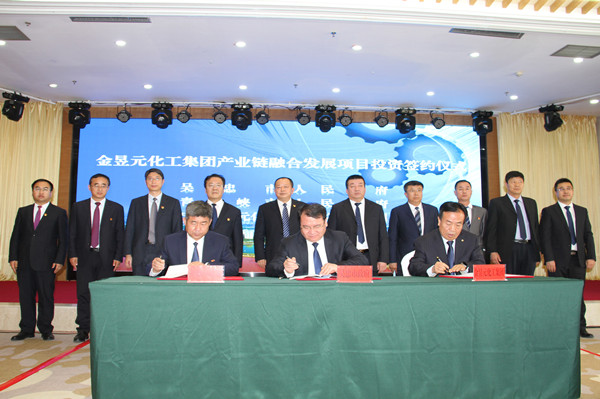 4月26日,开云体育官方网站和吴忠市、青铜峡市政府在吴忠市举行开云体育官方网站化工集团产业链融合发展项目签约仪式。吴忠市市委书记徐耀、市长王学军,青铜峡市市委书记文学智、市长赵彦林等领导出席签约仪式,开云体育官方网站化工集团董事长代良云、总裁陈文泓等领导参加签约仪式,签约仪式由吴忠市市长王学军主持。
